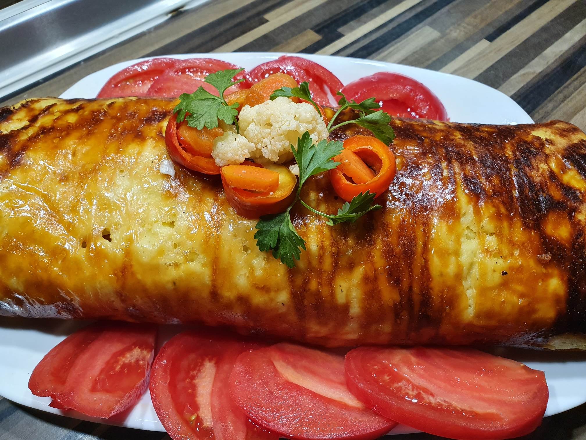 Γυρνάμε το μείγμα προσεκτικά ξεκολλώντας το από το χαρτί φτιάχνοντας ένα ρολό και το αφήνουμε για λίγα λεπτά (10) στο φούρνο ώστε να λιώσει το τυρί.