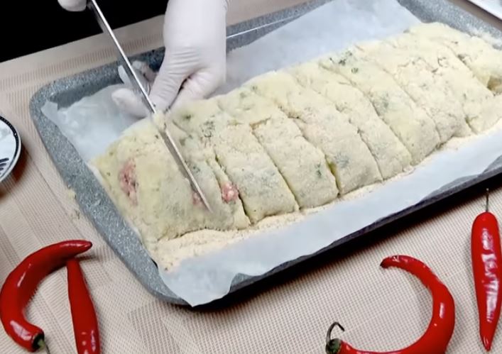 Παίρνουμε ένα άλλο ταψί βάζουμε αντικολλητικό χαρτί και τοποθετούμε τις φέτες του ρολού.