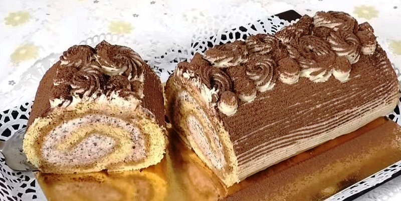 Μια από τις πιο απλές και νόστιμες συνταγές: Το ρολό αποδεικνύεται πολύ αέρινο, πλούσιο, λόγω του σιροπιού καφέ, υγρό, καλά εμποτισμένο.