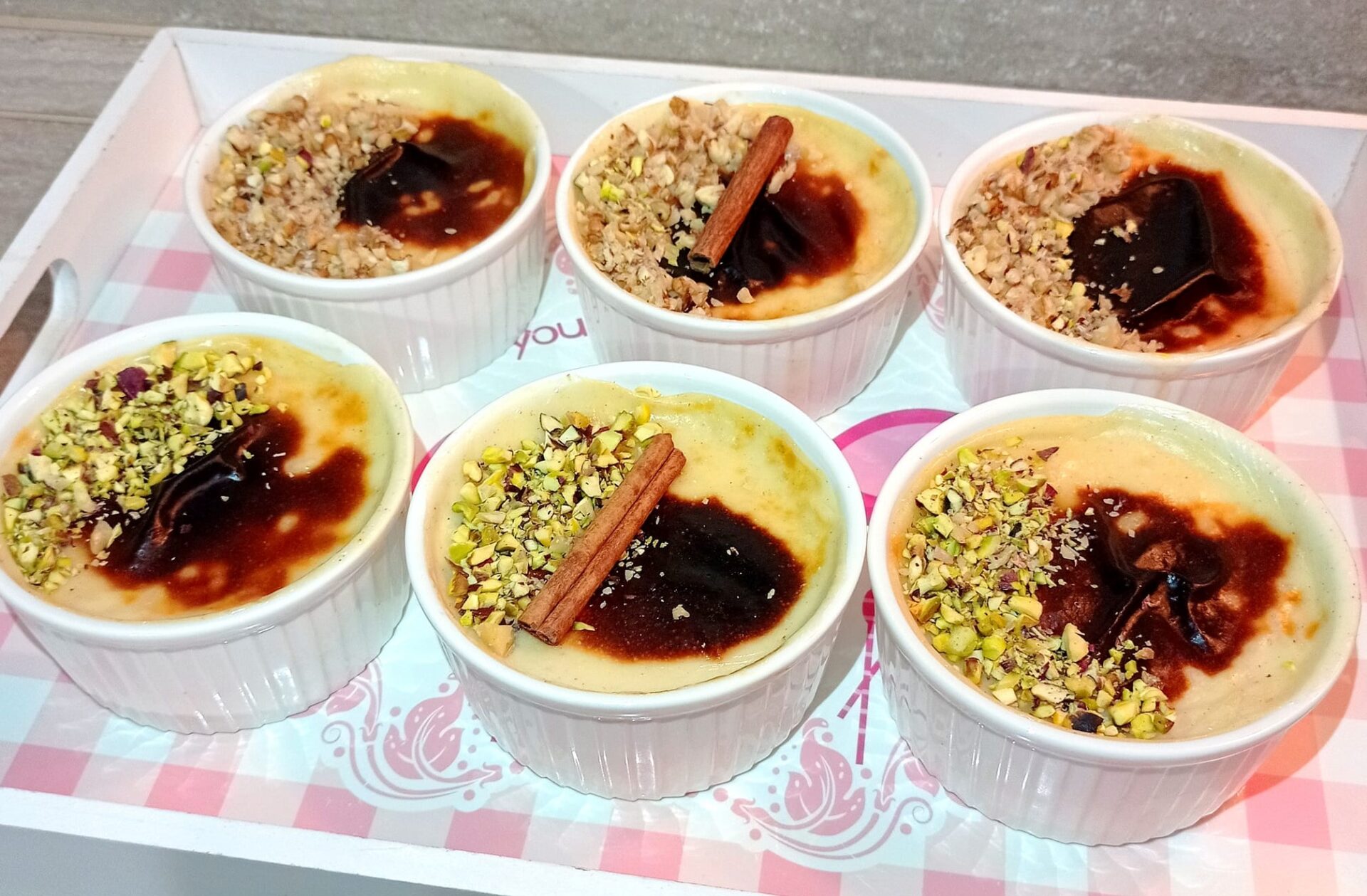 Alt Text 1: Ατομικές μερίδες από **Ρυζόγαλο στο Φούρνο** με σκούρα κρούστα.