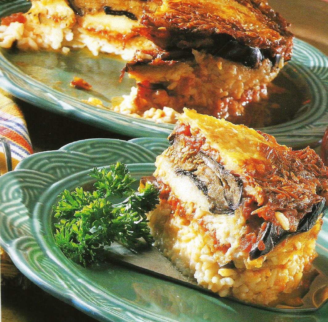 - Κόψτε τις μελιτζάνες σε στρογγυλές φέτες. Πασπαλίστε τες με μπόλικο αλάτι κι αφήστε τες να σταθούν 1-2 ώρες. Ξεπλύντε τες με άφθονο νερό και στίψτε τες στις παλάμες σας, να φύγει η περίσσεια του νερού. Βάλτε το λάδι σε τηγάνι με βαρύ πάτο, να κάψει και τηγανίστε τις μελιτζάνες κι από τις δύο πλευρές. Βγάλτε τες σε απορροφητικό χαρτί κουζίνας. Βράστε το ρύζι με το ζωμό κότας σε χαμηλή φωτιά, καλυμμένο, ώσπου να πιει όλο το υγρό και να φουσκώσει. Στο μεταξύ, ετοιμάστε τη σάλτσα.