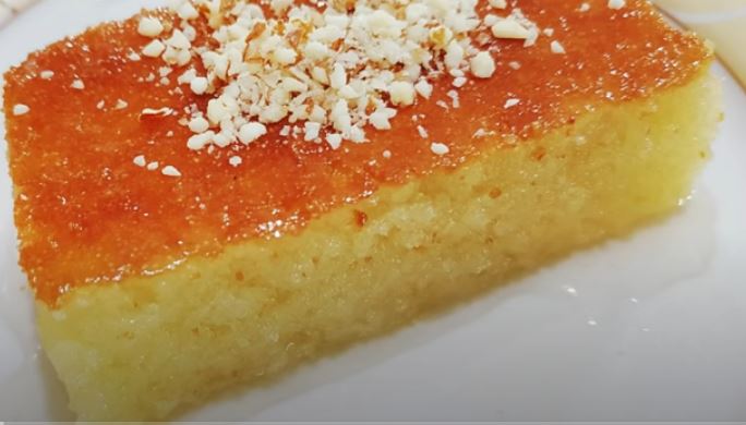 Μόλις γίνει το γλυκό μας το κόβουμε σε κομμάτια για να μπορεί να περάσει το σιρόπι σιροπιάζουμε ζεστό το γλυκό ζεστό και το σιρόπι.