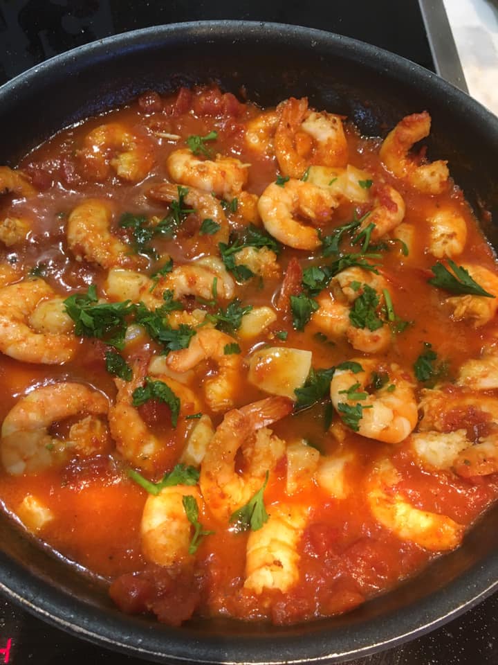 Αφαιρέστε τις γαρίδες απο το τηγάνι και αφήστε στην άκρη.