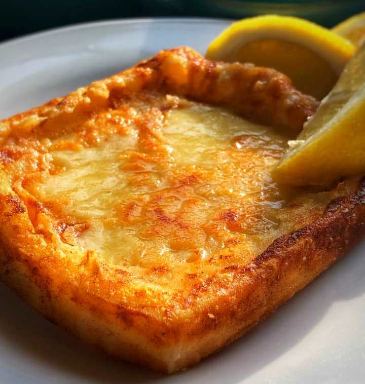 4. Απολαύστε το λαχταριστό τηγανητό τυρί με στύψιμο λεμονιού και ούζο.