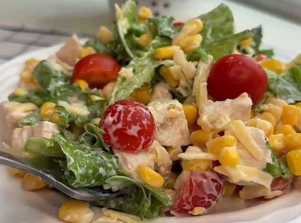 Το Κοτόπουλο: Για μέγιστη γεύση, ψήστε το κοτόπουλο με μπαχαρικά όπως πάπρικα ή ρίγανη πριν το προσθέσετε στη σαλάτα.