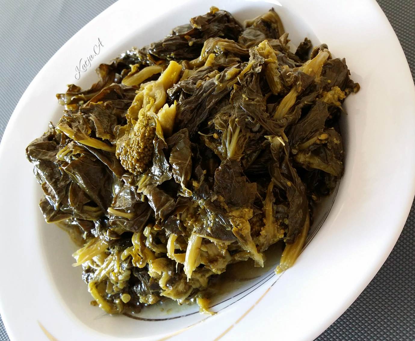 Έχει ελαφρώς πικρή γεύση, έντονη και καθοριστική χάρη στο είδος μαγειρέματος.