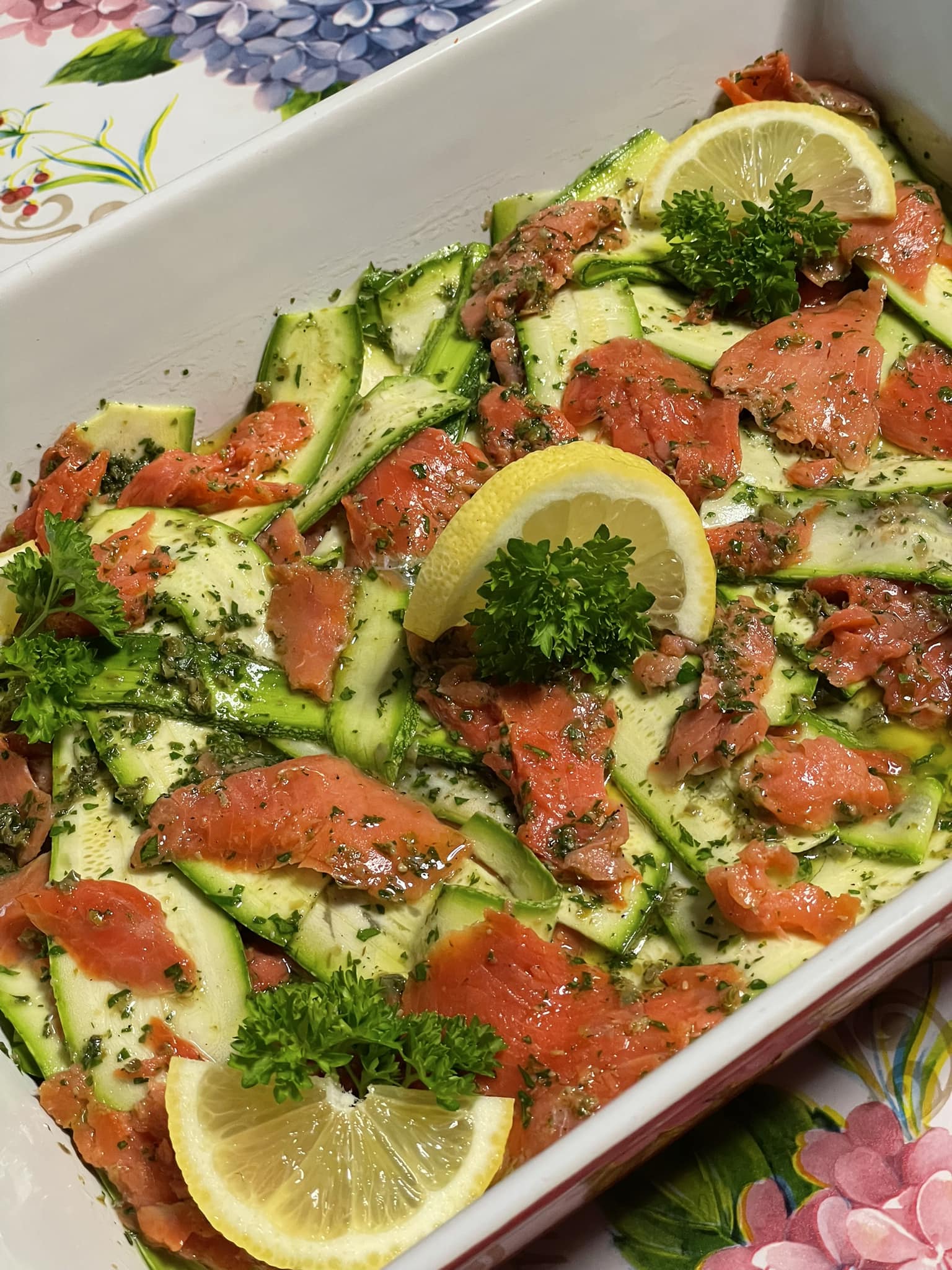 Αυτή η δροσερή και νόστιμη σαλάτα με κολοκυθάκια και καπνιστό σολομό είναι ιδανική για ένα ελαφρύ γεύμα ή ένα υγιεινό συνοδευτικό.