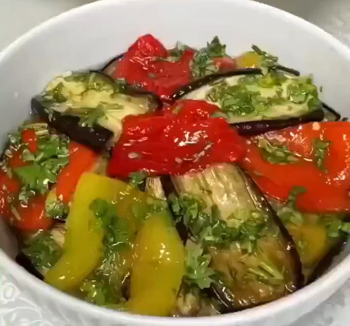 Φτιάξτε την πιο νόστιμη Σαλάτα με Πιπεριές και Μελιτζάνες! Μια συνταγή που γίνεται ανάρπαστη, με ψητά λαχανικά και αρωματικό σος με κόλιανδρο και μηλόξυδο.