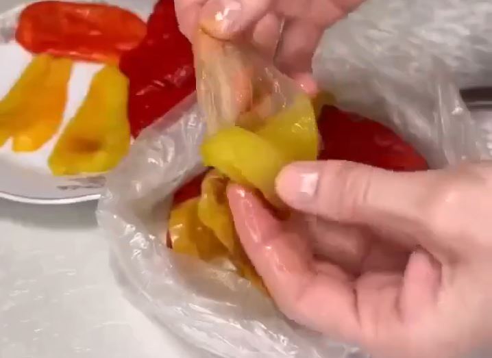 Ξεφλούδισμα: Το κόλπο με το να βάλουμε τις πιπεριές σε μια σακούλα ή να τις σκεπάσουμε με μεμβράνη είναι απαραίτητο, επειδή οι υδρατμοί που εγκλωβίζονται βοηθούν τη φλούδα να ξεκολλήσει πανεύκολα.