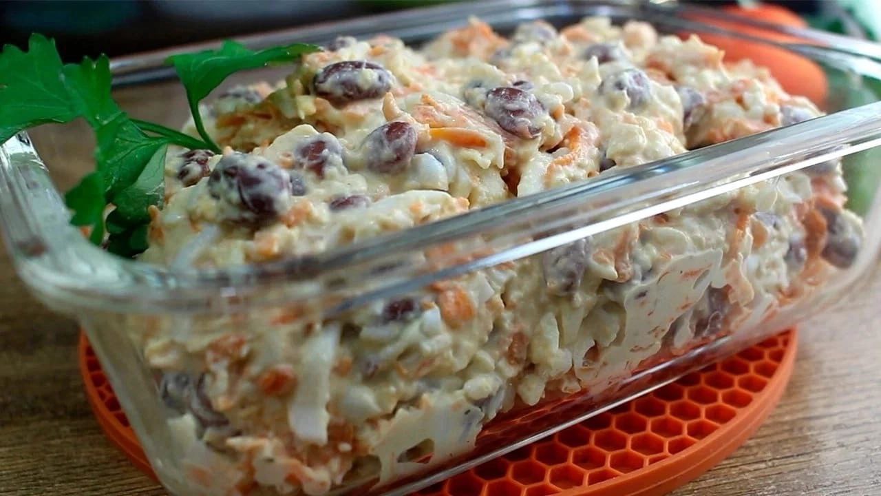 5. Στραγγίζετε τα υγρά από τα κόκκινα φασόλια κονσέρβας και τα προσθέτετε στη σαλάτα.