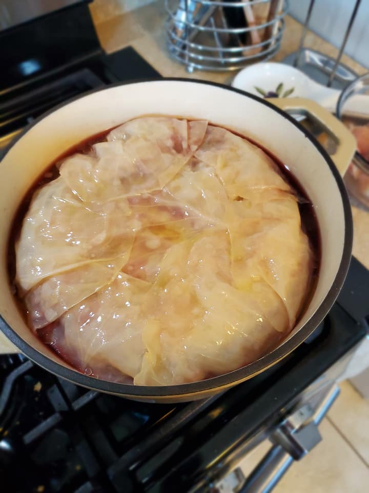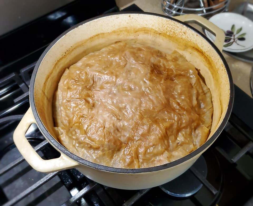χυμό λάχανου ώστε να φτάσει στο επίπεδο του σαρμά χωρίς να επιπλέει στο υγρό (εικόνα)