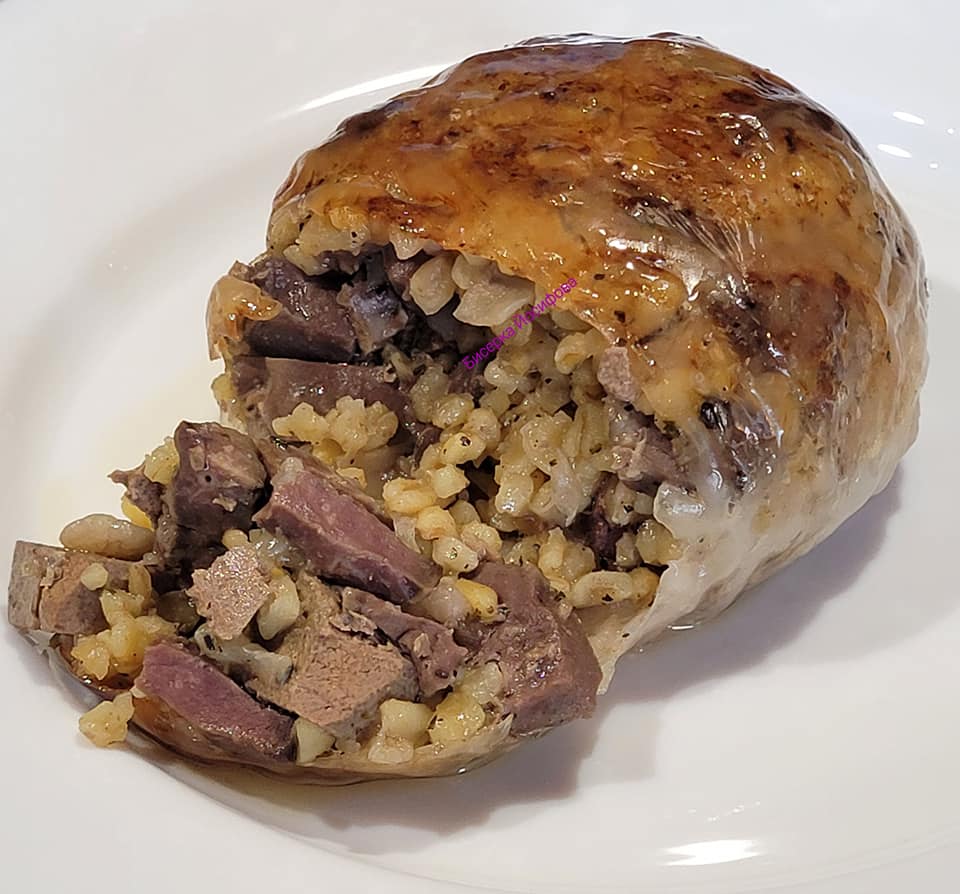 Κόβουμε σε κομματάκια τα νεφρά, την καρδιά και το συκώτι. αφαιρούμε σκληρά νεύρα και αρτηρίες. Κρατάμε μόνο τα τρυφερά κομματάκια του κρέατος.