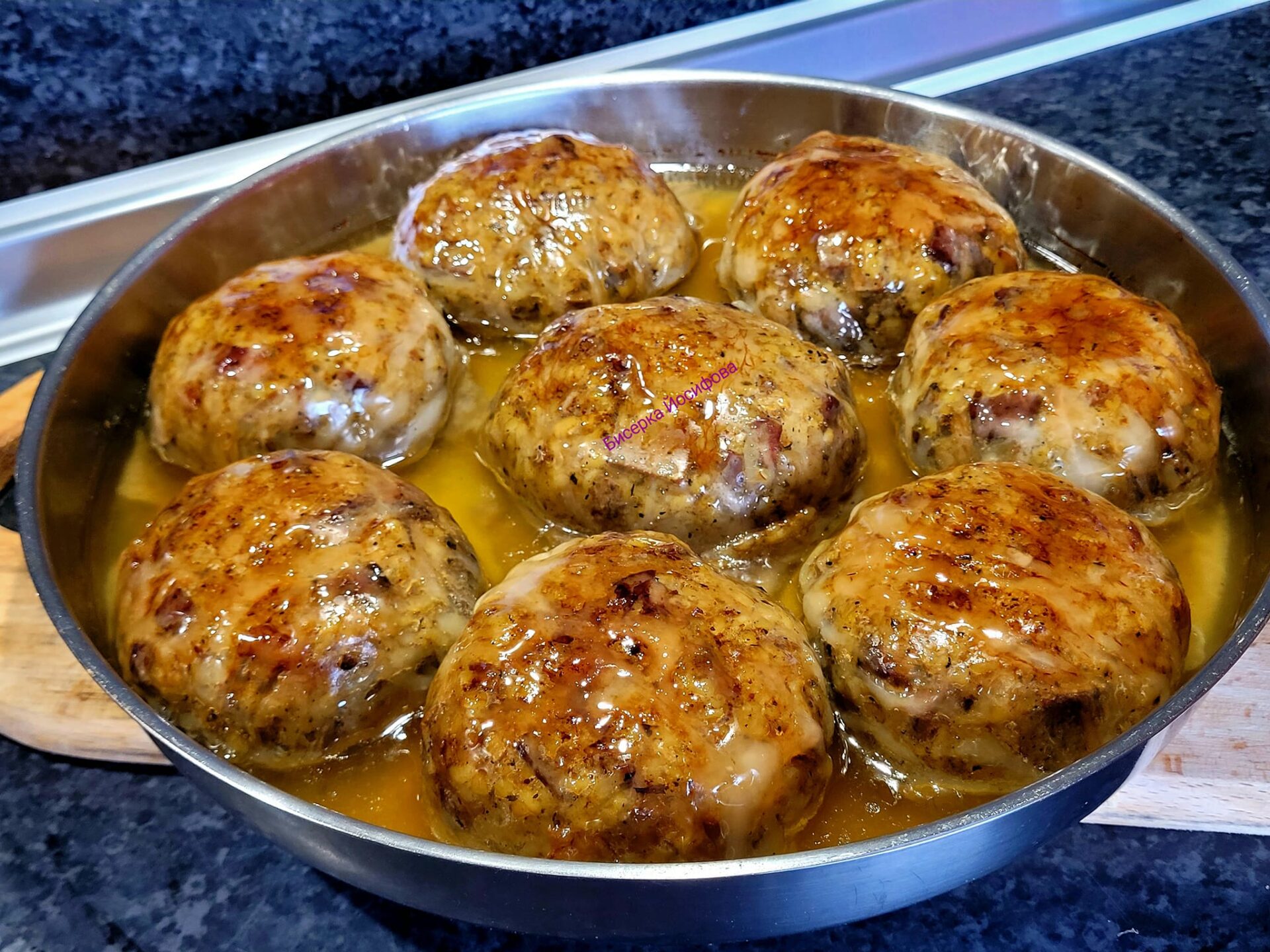 Προσθέτουμε στο ταψί 2/3 της κούπας βραστό νερό και ψήνουμε το φαγητό μας για 50 – 55 λεπτά μέχρι να ροδοκοκκινίσουν οι σαρμάδες μας.