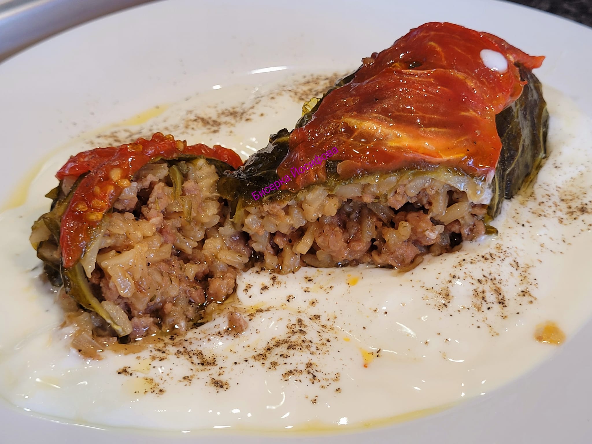 Σαρμαδάκια με φρέσκα λαχανόφυλλα, κιμά και ρύζι