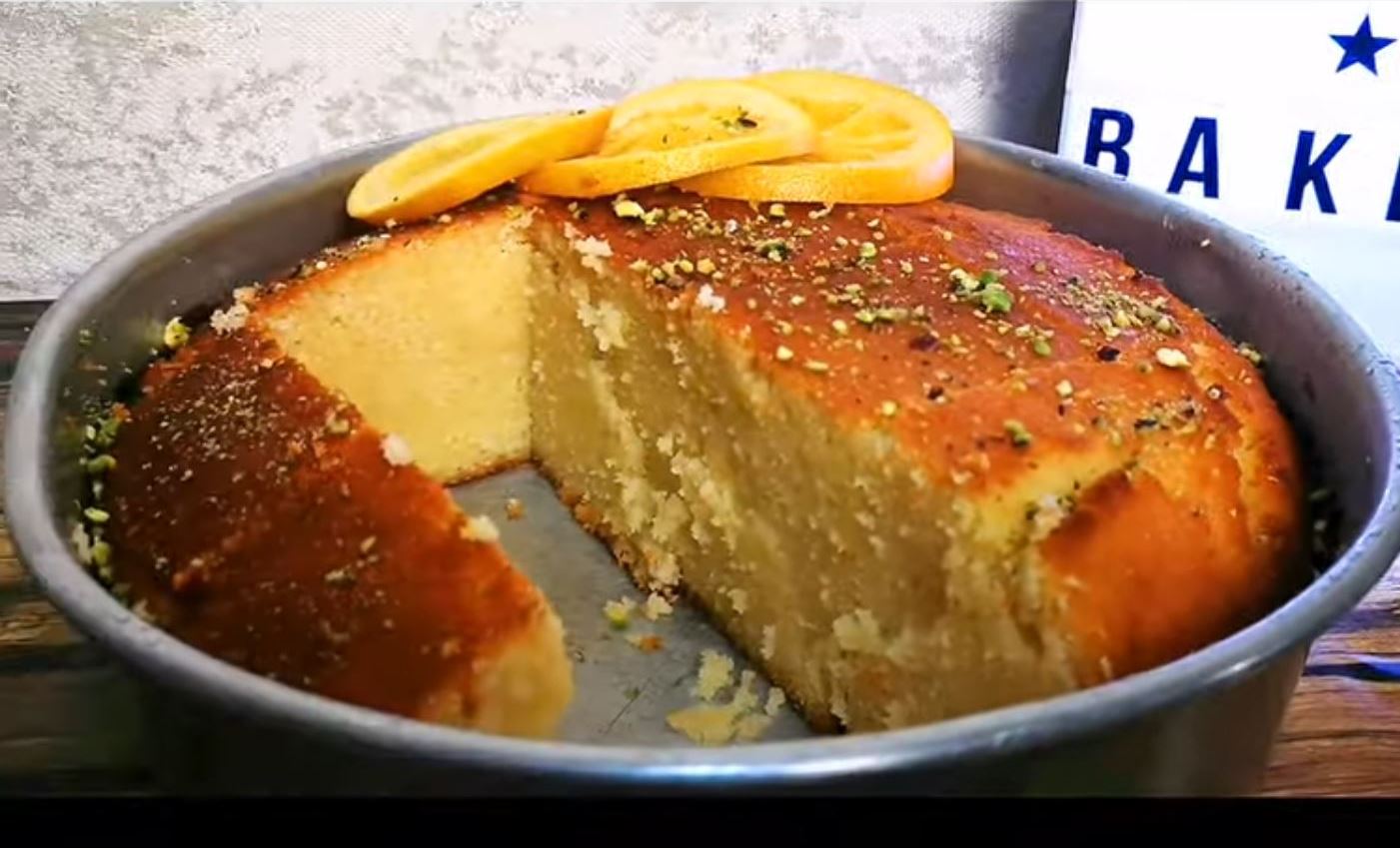 Σιμιγδάλι: Η χρήση ψιλού σιμιγδαλιού και σκόνης αμυγδάλου δίνει πλούσια και αφράτη υφή. Το σιμιγδάλι είναι αυτό που δεσμεύει το σιρόπι.