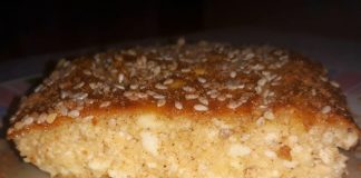 Μόλις το βγάλουμε από το φούρνο και είναι ακόμα ζεστό ρίχνουμε από πάνω το κρύο σιρόπι και αφήνουμε στην άκρη να κρυώσει και να απορροφήσει όλο το σιρόπι.