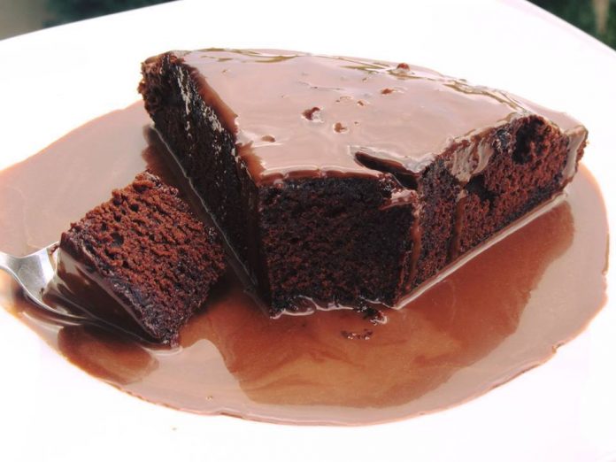 Μόλις ενωθούν καλά προσθέτουμε το νερό και το κονιάκ. Χτυπάμε να ενωθούν καλά. Αδειάζουμε το μείγμα μας σε καλά βουτυρωμένο μεσαίο πυρέξ ή ταψάκι. Ψήνουμε σε προθερμασμένο φούρνο στους 180 βαθμούς για περίπου 40 λεπτά. Δοκιμάζουμε το γλυκό μας στη μέση αν είναι έτοιμο. Ο χρόνος διαφέρει από κουζίνα σε κουζίνα.