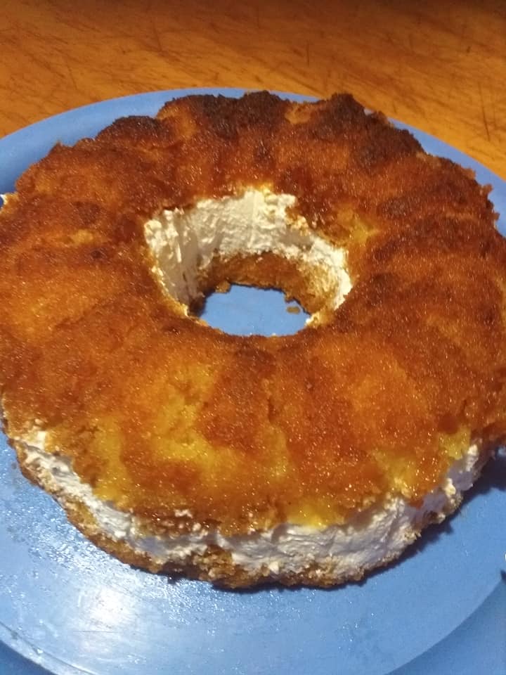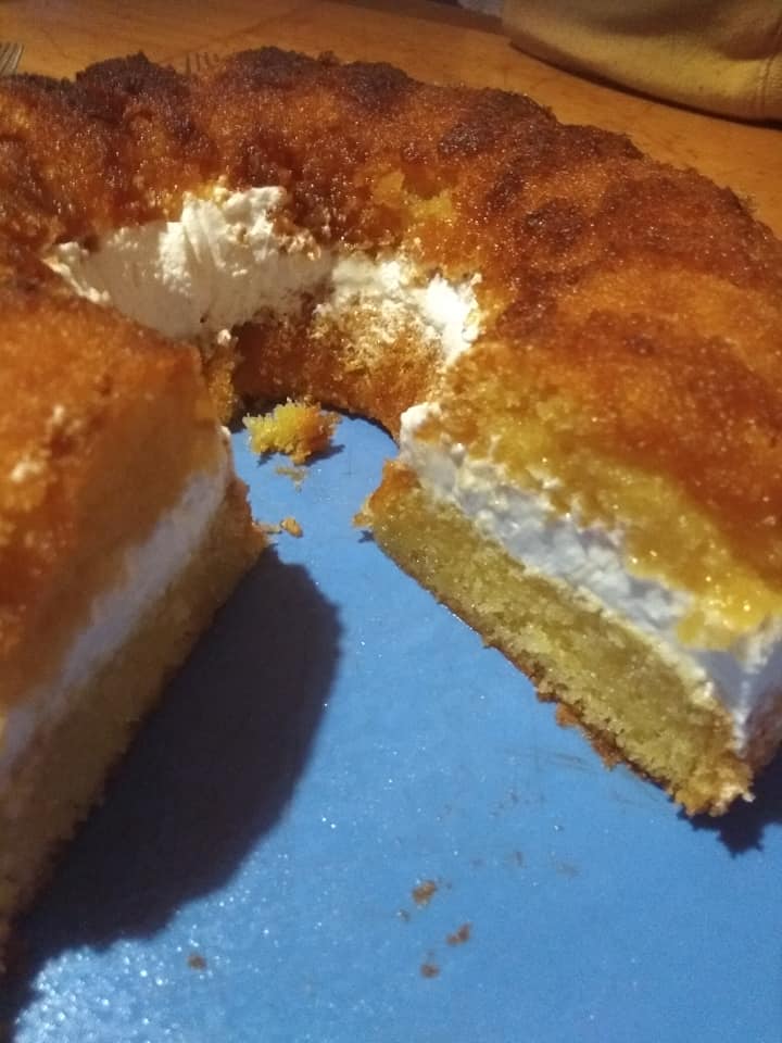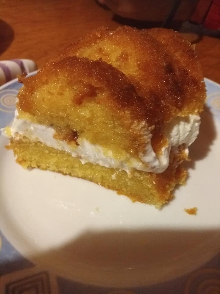 Όταν κρυώσει αφαιρούμε προσεκτικά από τη φόρμα και με ένα πριονωτό μαχαίρι κόβουμε στη μέση οριζόντια