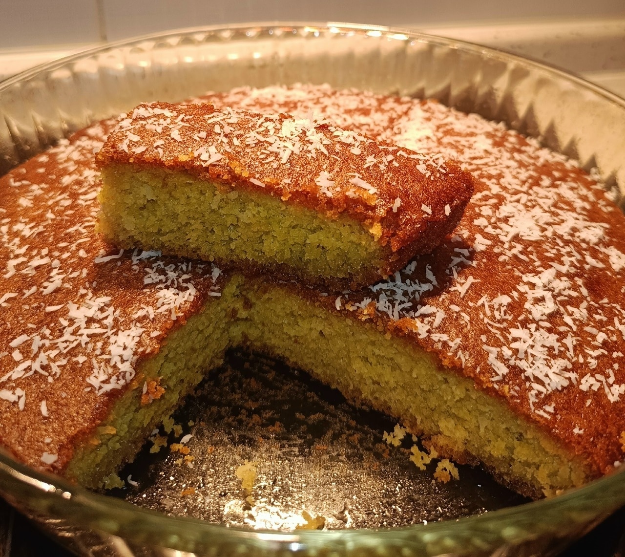Διακόσμηση: Όταν απορροφηθεί το σιρόπι, διακοσμούμε την κορυφή με νιφάδες καρύδας . Κόβουμε σε κομμάτια μόνο όταν το κέικ κρυώσει εντελώς .
