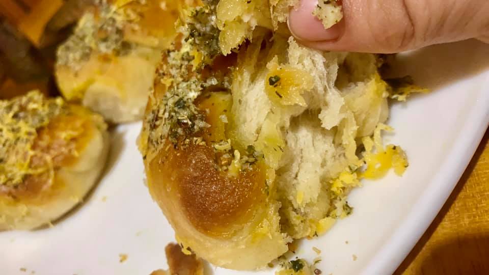 Χωρίζω τη ζύμη σε 16 κομμάτια θα πλάθω σε κορδόνια και κάνω κόμπους. Όχι 100% το ίδιο, και φυσικά ψήνουμε στους 200 βαθμούς σε προθερμασμένο φούρνο με αέρα. Πέντε λεπτά πριν το μαγείρεμα, ρίξτε ένα μείγμα ελαιολάδου, σκελίδες σκόρδου, φρέσκο βασιλικό και μαϊντανό και αλάτι που τα βάζετε στο μπλέντερ. Τέλος, πασπάλισα με τριμμένο τυρί τσένταρ.
