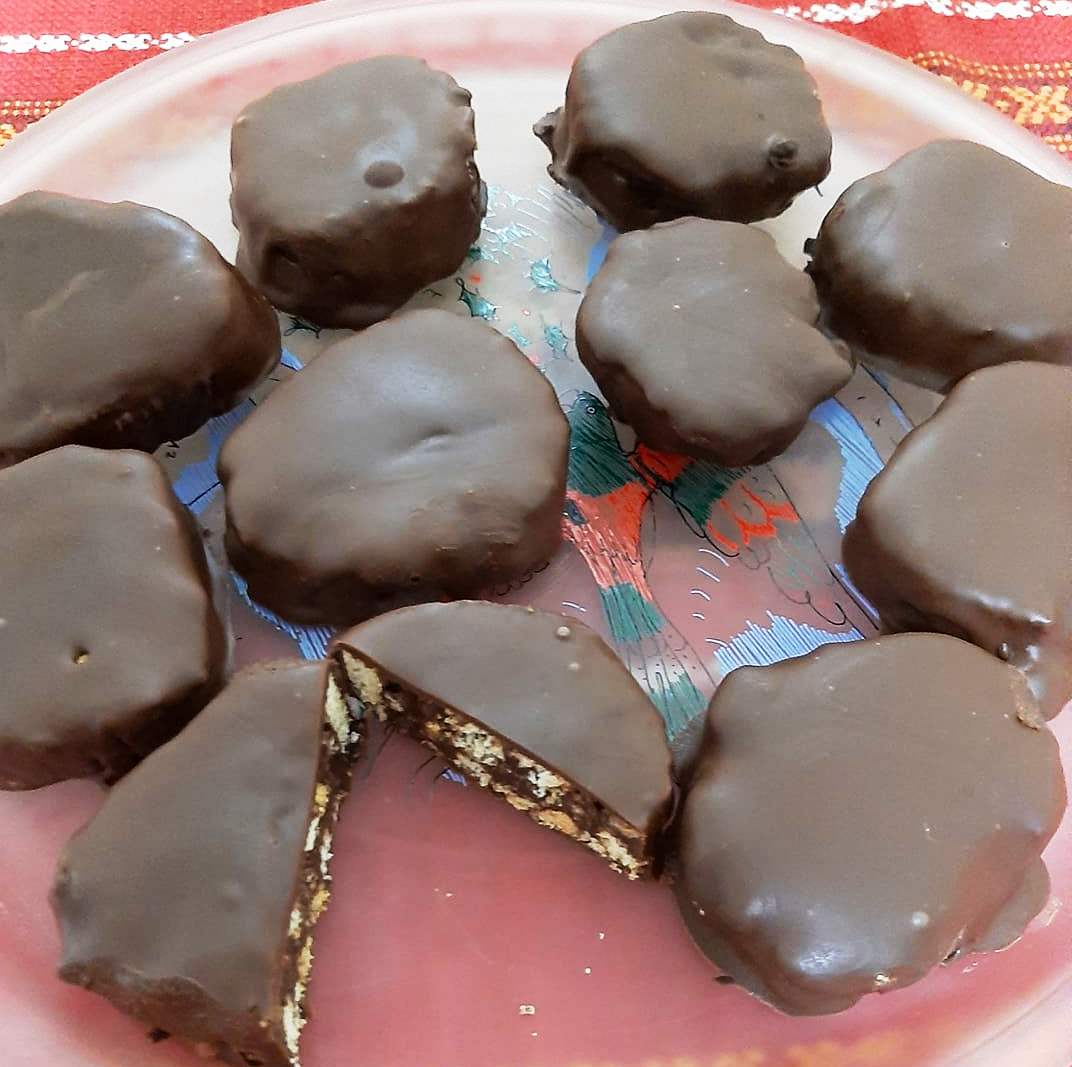 Τοποθετούμε τα σοκολατάκια πάνω σε μια λαδόκολλα και τα αφήνουμε να παγώσουν.