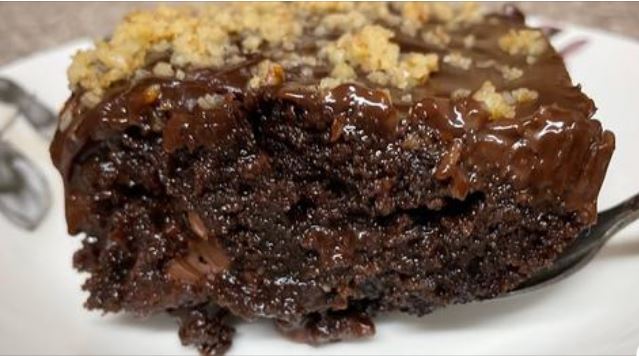Στη συνέχεια βουτυρώνουμε το ταψί μας και βάζουμε λίγη σκόνη κακάο και ρίχνουμε το μείγμα μας στο μπολ και ψήνουμε στο φούρνο για 40 λεπτά στους 170 βαθμούς Κελσίου.