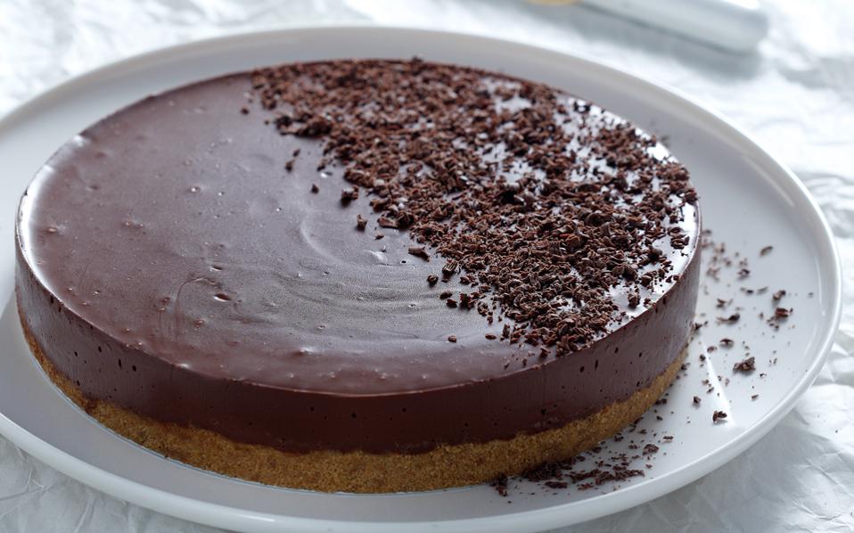 Βγάζουμε την μπισκοτένια βάση από το ψυγείο, απλώνουμε το μείγμα σοκολάτας και γιαουρτιού και το στρώνουμε ομοιόμορφα. Ξαναβάζουμε την τούρτα στο ψυγείο και την αφήνουμε για τουλάχιστον 3 ώρες, μέχρι να κρυώσει και να σφίξει.