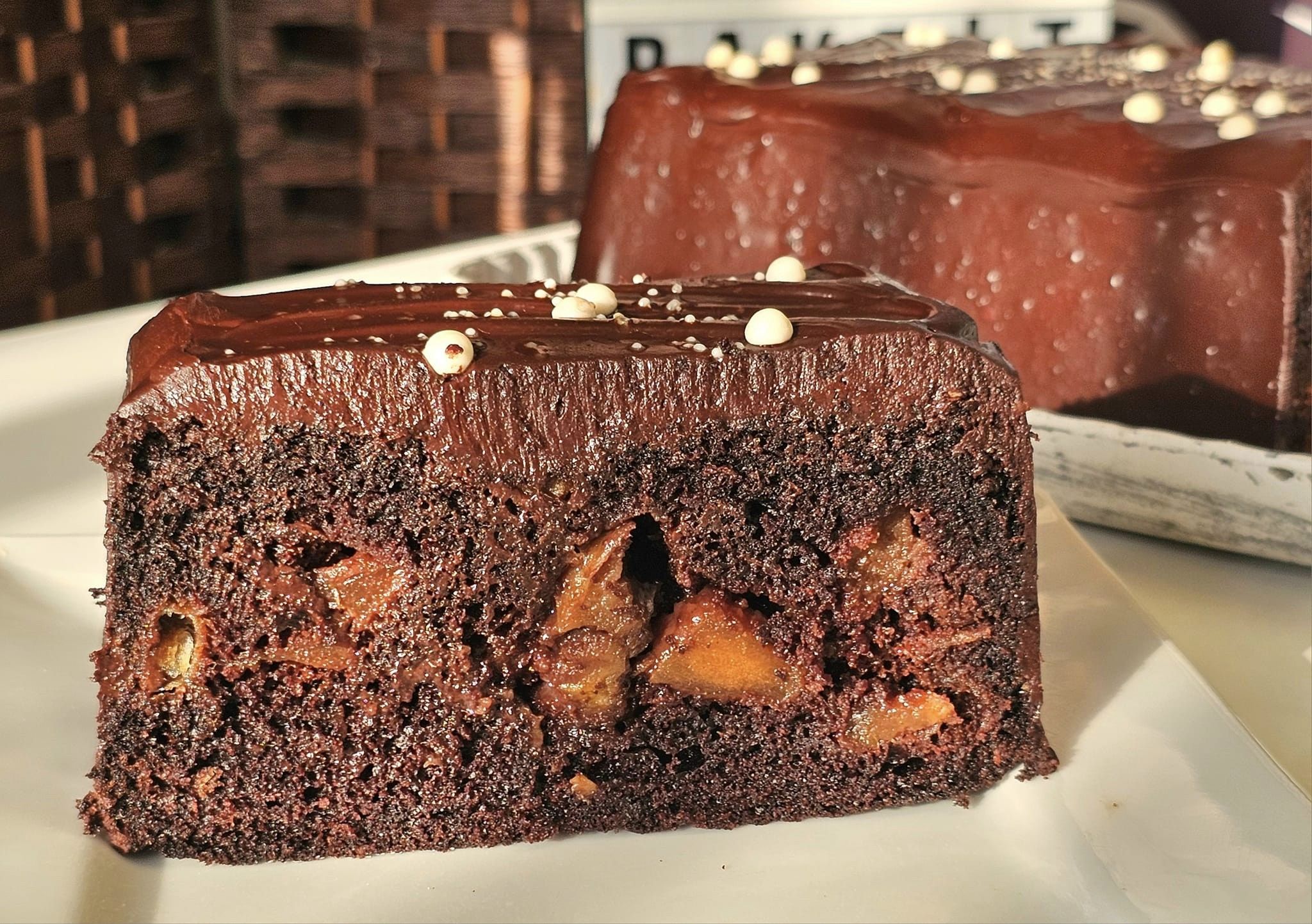Υπέροχο σοκολατένιο γλάσο που πραγματικά πιστέψτε με ταιριάζει απόλυτα με το συγκεκριμένο σοκολατένιο κέικ μήλου