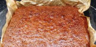 Περιχύστε τη λιωμένη σοκολάτα πάνω από το παντεσπανι καλύπτοντας ολόκληρη την επιφάνεια.