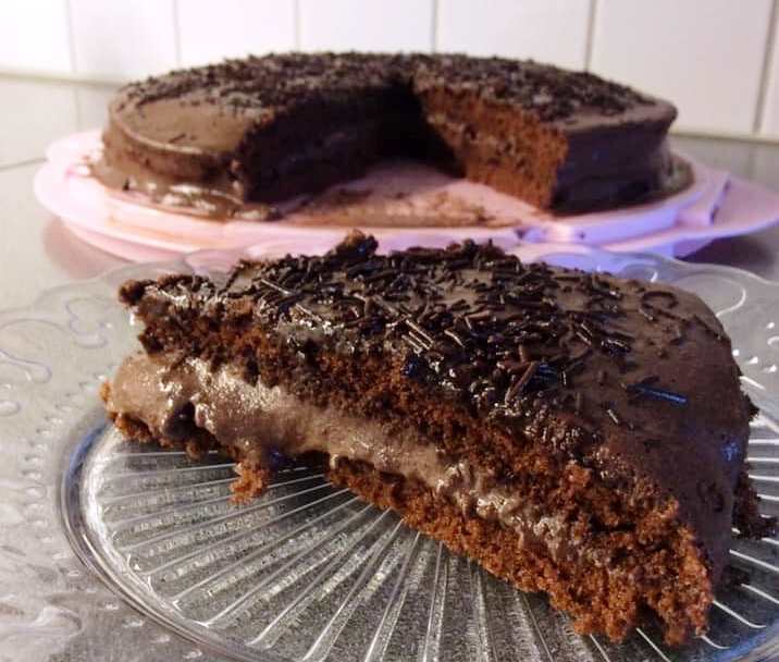 Τοποθετήστε την τούρτα στο ψυγείο για τουλάχιστον 2 ώρες, μέχρι να σταθεροποιηθεί η κρέμα και η σοκολάτα.