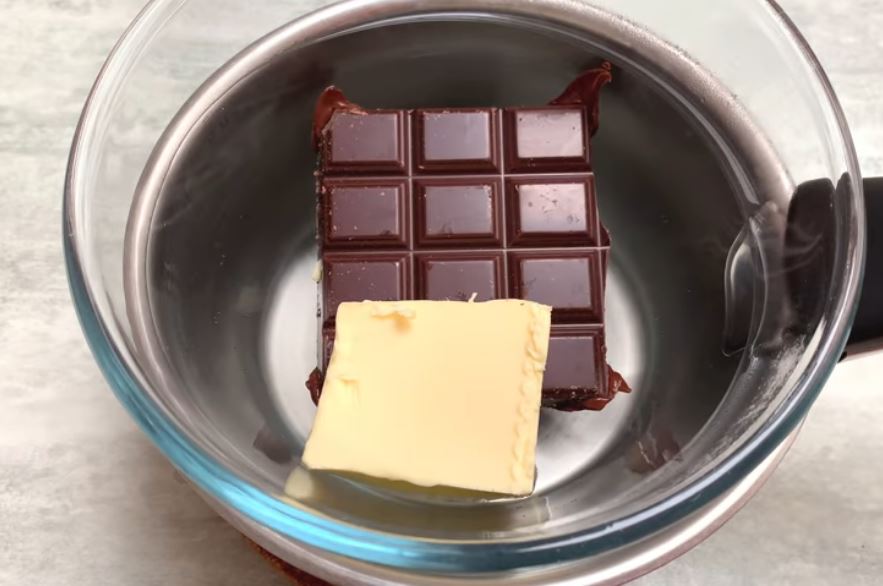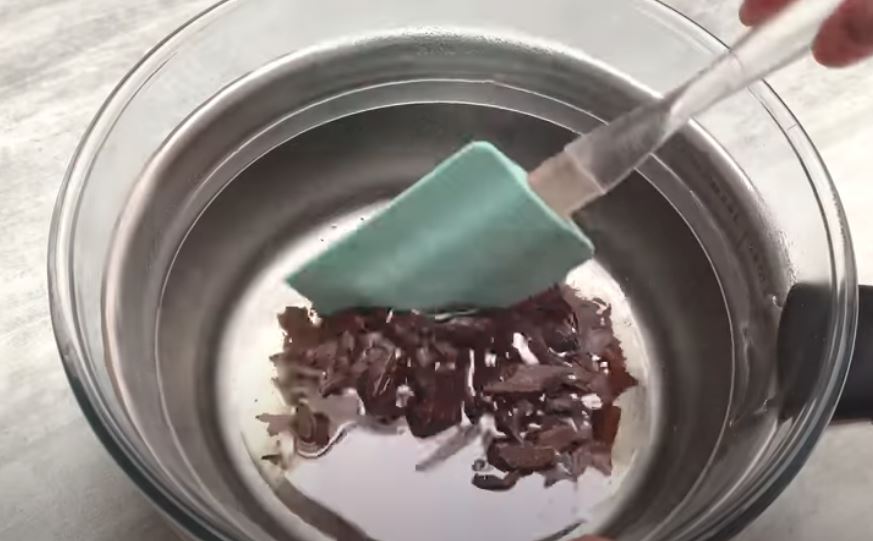 μια κατσαρόλα με ζεστό νερό και ανακατεύουμε να λιώσει η σοκολάτα.