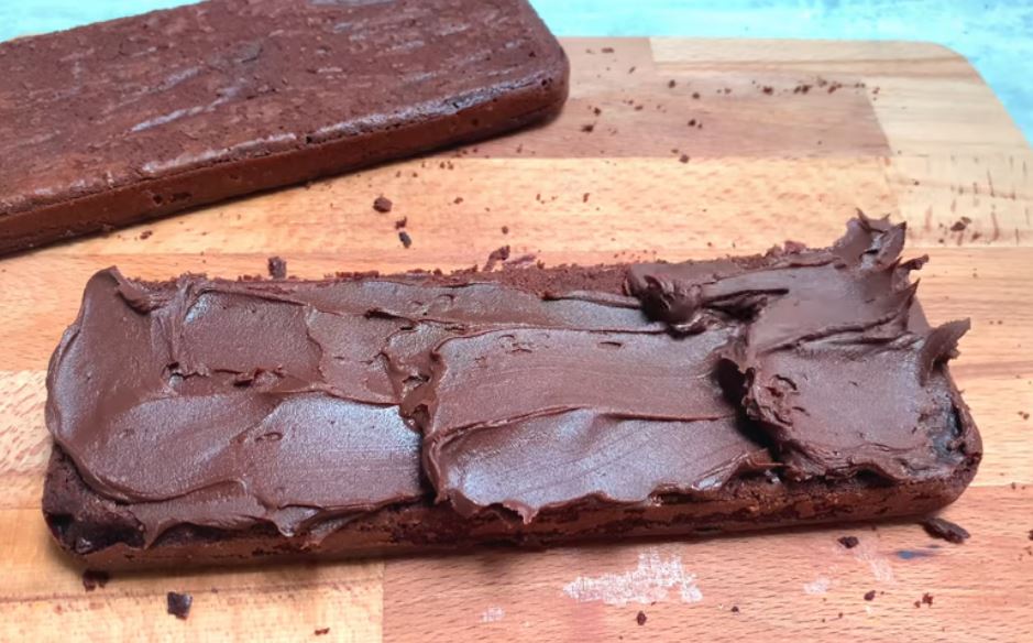 Απλώνουμε την σοκολάτα στο μισό κέικ και απο πάνω βάζουμε το άλλο μισο κέικ σαν
