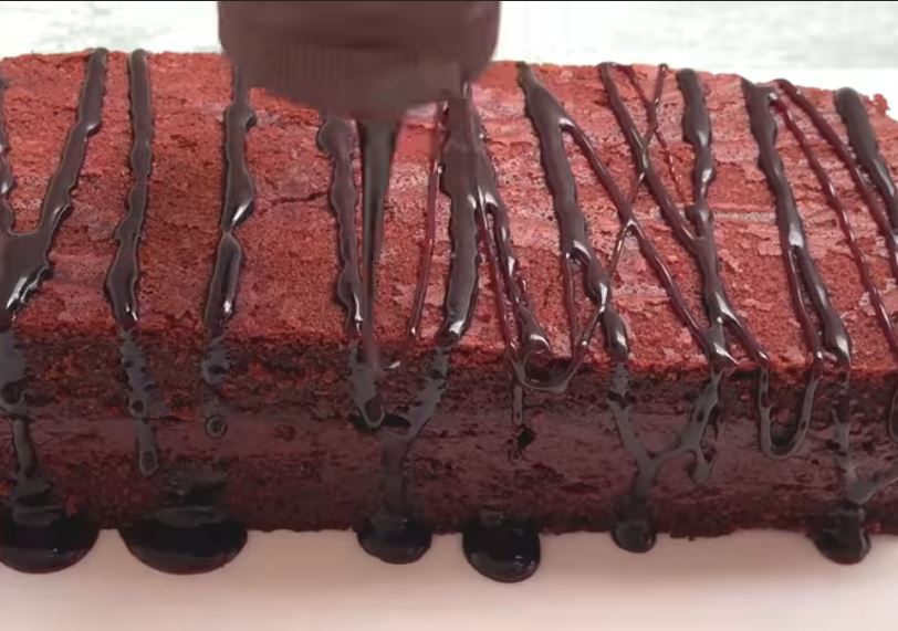 Κόβουμε τα πλαϊνά γαρνίρουμε με σιρόπι σοκολάτα