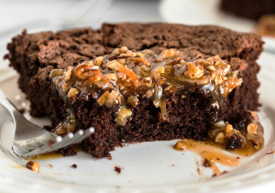 Απλώστε το μείγμα στο προετοιμασμένο ταψί. Ψήνετε σε προθερμασμένο φούρνο 180 βαθμών για 30 λεπτά ή μέχρι να βγει καθαρή μια οδοντογλυφίδα που έχει εισαχθεί στο κέντρο του κέικ.