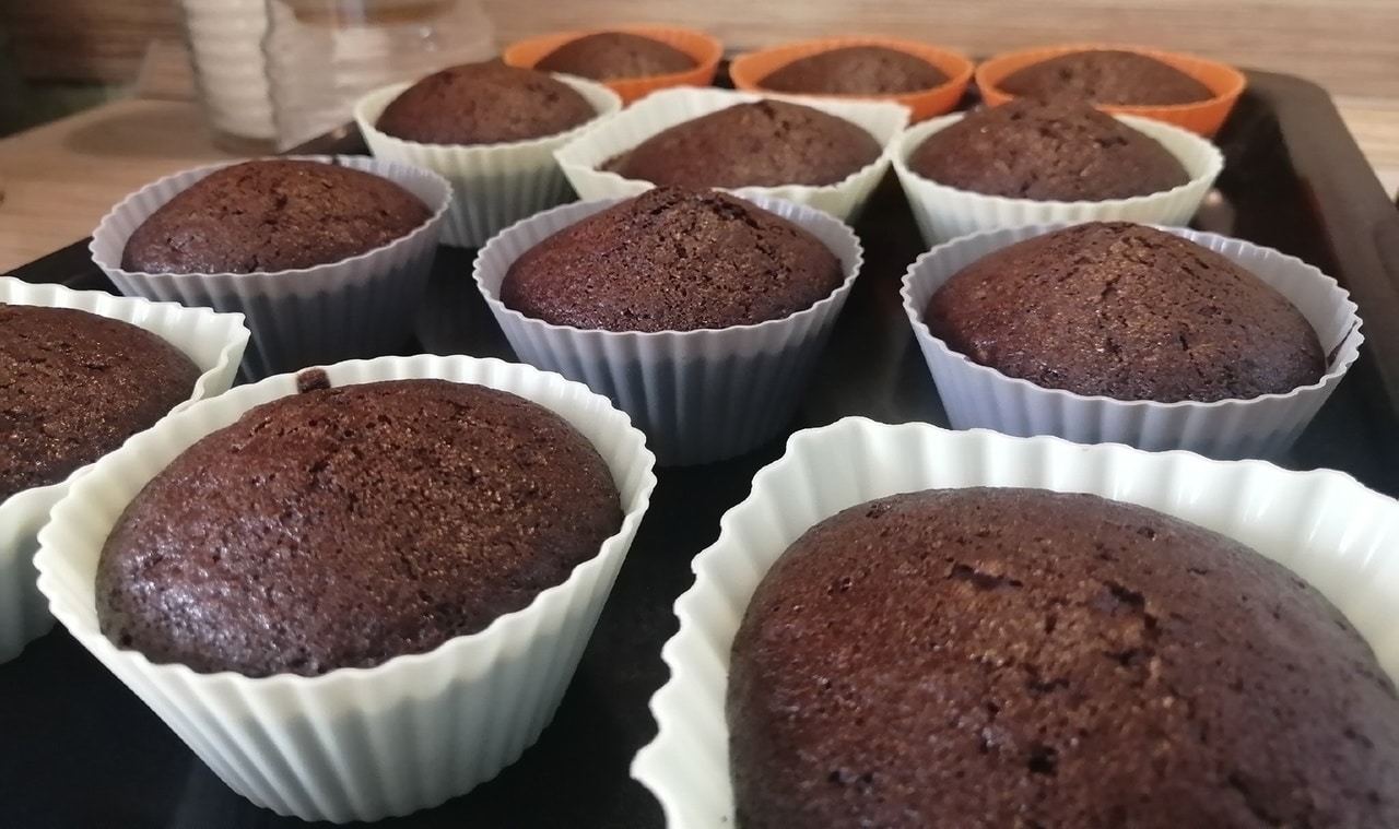Για να φτιάξετε μάφινς, γεμίστε τις θήκες για μάφινς κατά τα 2/3 και ψήστε για 25 λεπτά.