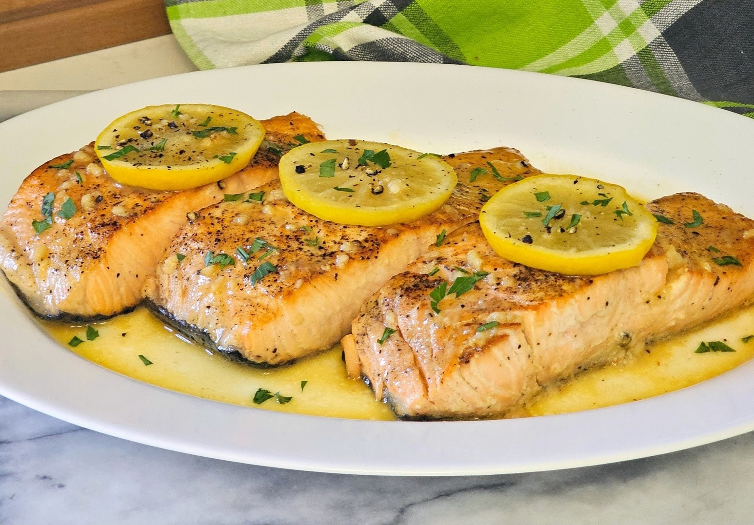 Δοκίμασε την πιο εύκολη και νόστιμη συνταγή για σολομό με σάλτσα λεμονιού και βουτύρου. Ζουμερός σολομός, έτοιμος σε 20 λεπτά, ιδανικός για ένα γρήγορο και υγιεινό γεύμα!