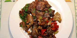Τα έβαλα σε ένα βαθύ ταψί (παρακαλώ, δείτε τη φωτογραφία), ρίχνω ελαφρά τη μαρινάδα
