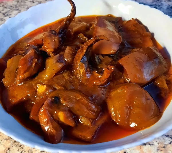 Προσθέτουμε τον πελτέ, τον “καίμε” στον πάτο της κατσαρόλας να μοσχοβολίσει, προσθέτουμε το νεράκι, αλατοπίπερο, τη ζάχαρη, την πάπρικα και μόλις αρχίσει να βράζει το μείγμα, χαμηλώνουμε την εστία στο μισό (εμένα που είναι ως 9, την έβαλα στο 4,5-5) και αφήνουμε να βράσει υπομονετικά και σιγά-σιγά, έως να μελώσει το φαγάκι μας και να μείνει με αυτήν την καταπληκτική παχύρευστη σαλτσούλα που βλέπετε!!!❤️❤️❤️. Εμένα μου πήρε περίπου 1 1/2 ώρα!