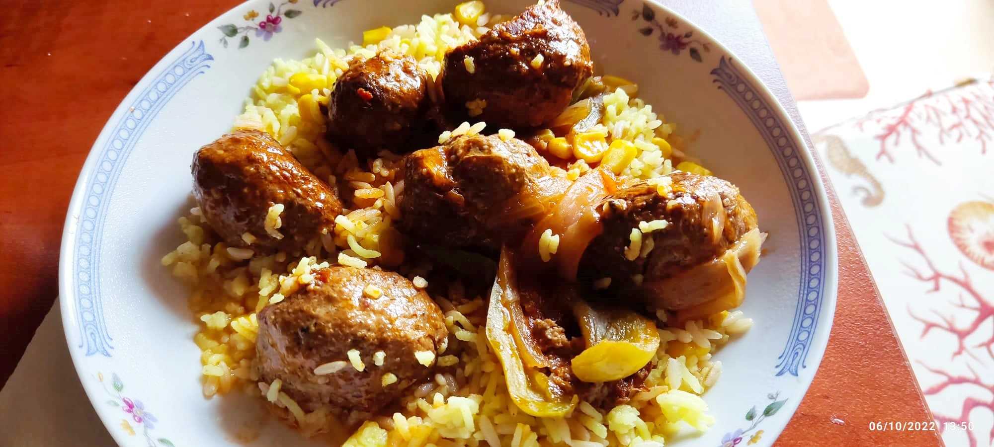 Σε μια κατσαρόλα βάζω λιγο λάδι 2 κούπες ρύζι κ το τηγανιζω για λίγο ανακατεύοντας διαρκώς. Κατόπιν προσθέτω 4 κούπες χλιαρό νερό αλάτι πιπέρι κουρκουμα κ βράζω σε χαμηλή φωτιά μέχρι να απορροφήσει το ρύζι το νερό, περίπου 5-6 λεπτά.
