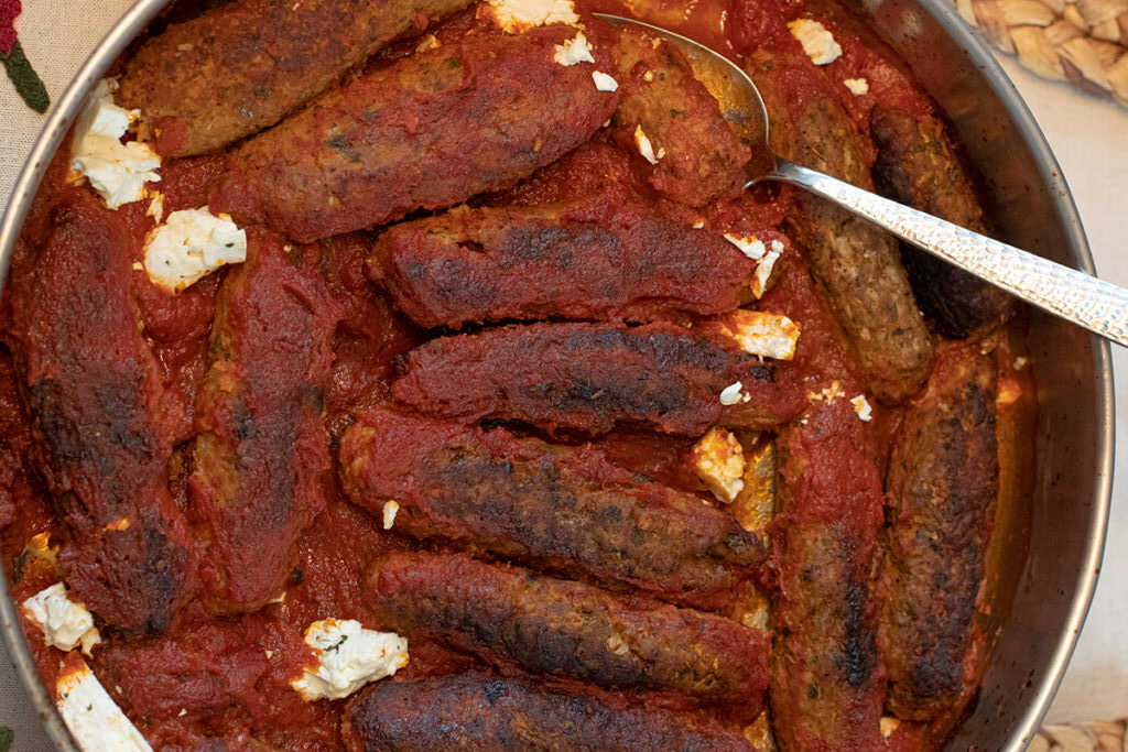 σουτζουκάκια πάνω από τη σάλτσα.