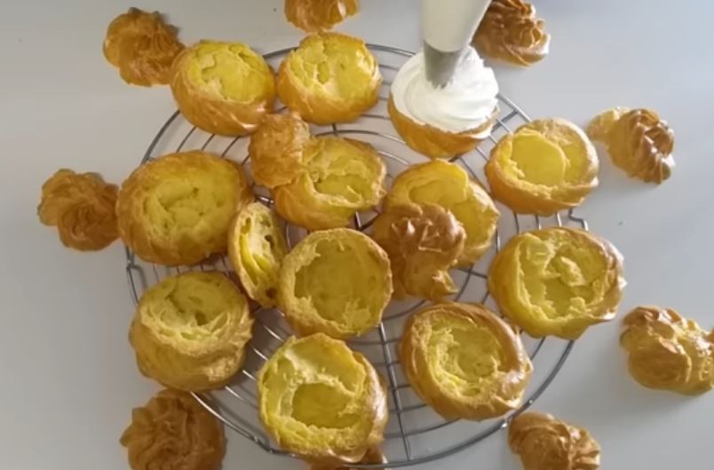 Κόβουμε στην μέση τα Σου γεμίζουμε με κρεμα απο μια σακουλα ζαχαροπλαστικης και τα σκεπάζουμε