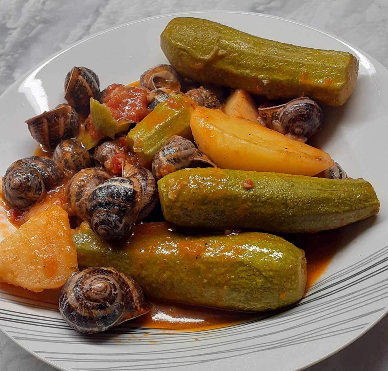 Χοχλιους με κολοκυθάκια και πατάτα.