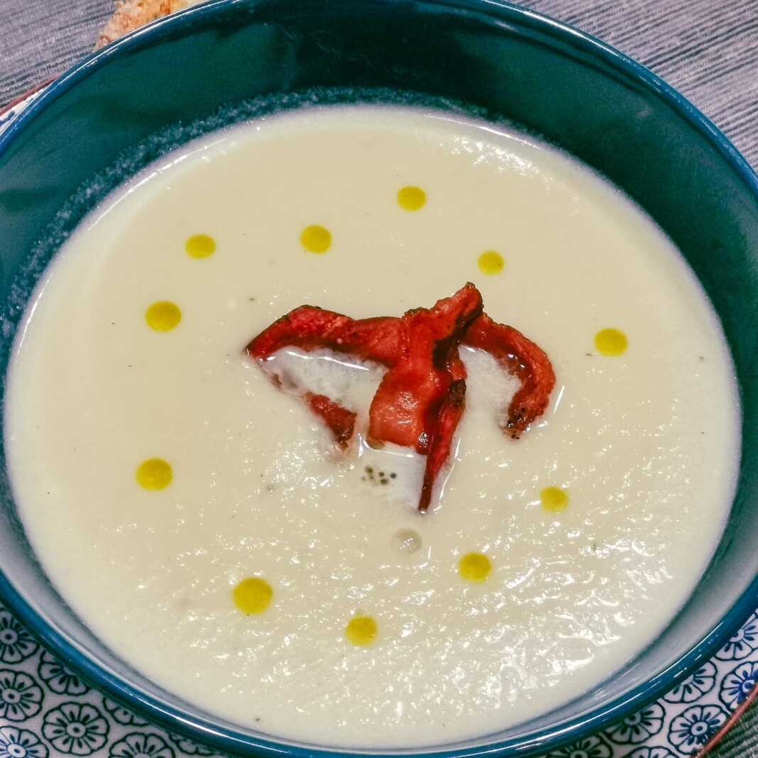 Βράζουμε και σερβίρουμε με μπεικον και σταγόνες ελαιόλαδο.