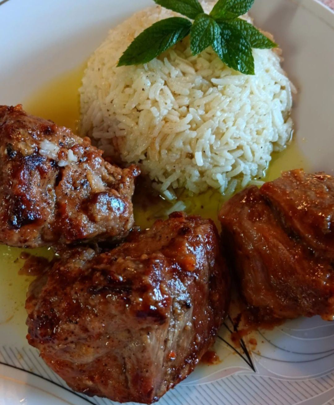 Σερβίρω το χοιρινό ζεστό με το ρύζι και μια ωραία σαλάτα. Καλή όρεξη!