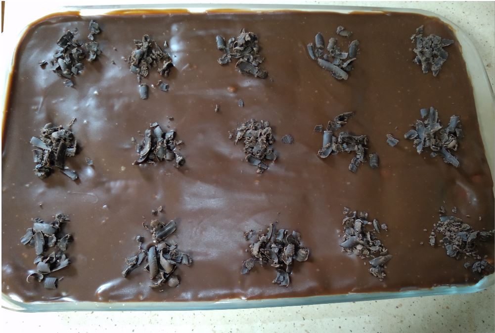 (Αν θέλουμε ρίχνουμε και λίγη τριμμένη κουβερτούρα για ντεκόρ).