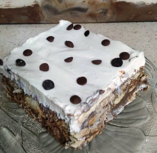 Απλώστε τη σαντιγύ πάνω από την κρύα βάση με τα μπισκότα.