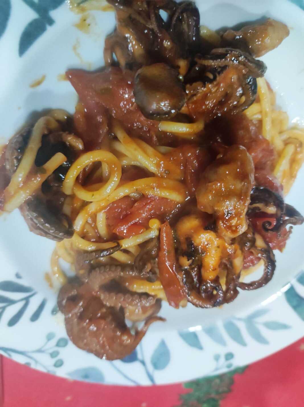 Σπαγγέτι με σάλτσα και χταποδάκια