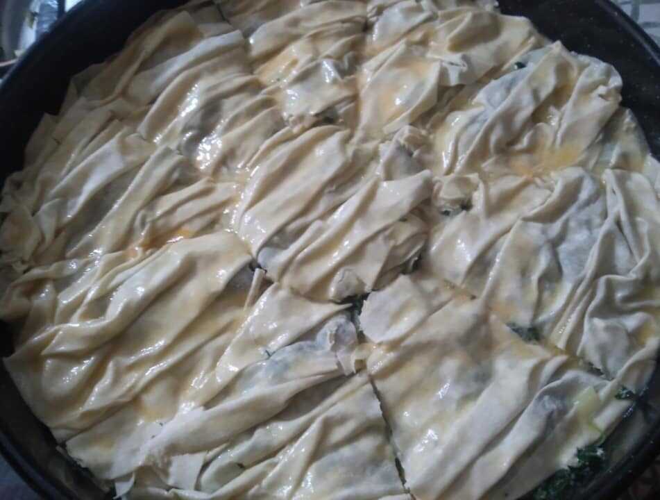 Τα 2 φυλλα που έμειναν κανω βεντάλια και καλύπτω την πιτα.