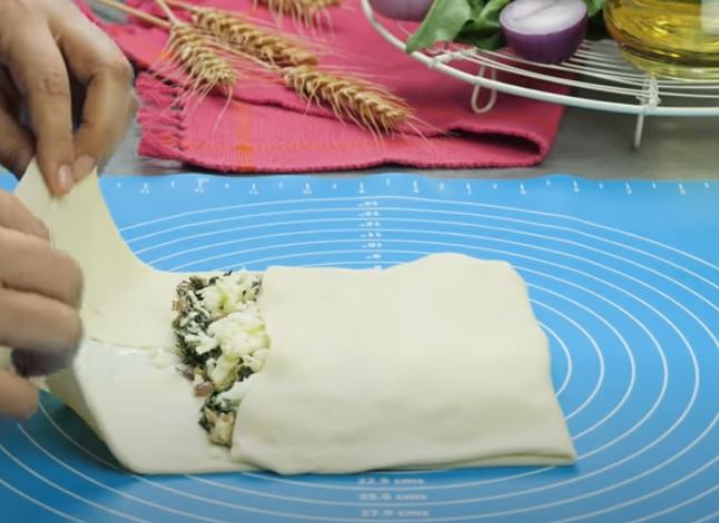 Επαναλάβετε τη διαδικασία με το άλλο μισό της ζύμης και το άλλο μισό της γέμισης.