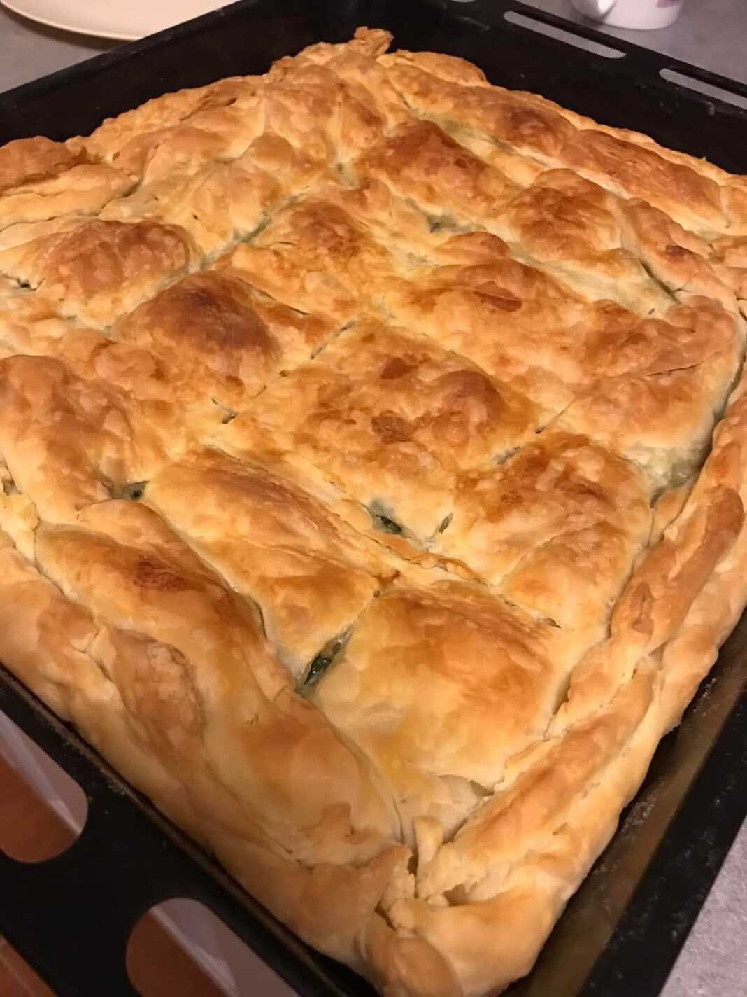 Χαράξτε ελαφρά την επιφάνεια της πίτας. Ψήστε σε προθερμασμένο φούρνο στους 180°C για περίπου 45-60 λεπτά, ή μέχρι να ροδίσει καλά το φύλλο.